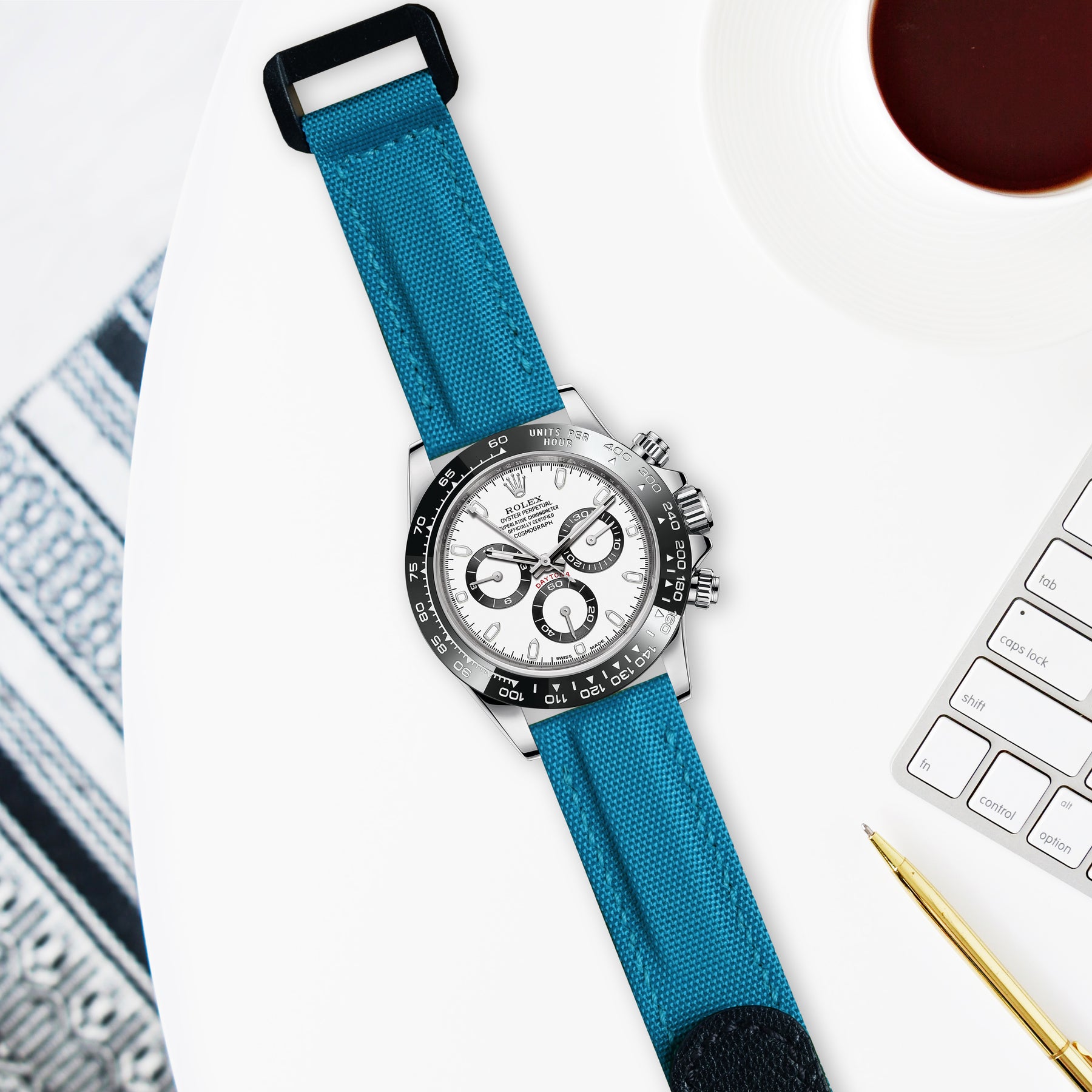Rolex Daytona Straps - Velcro Canvas Extreme Padded Cyan
