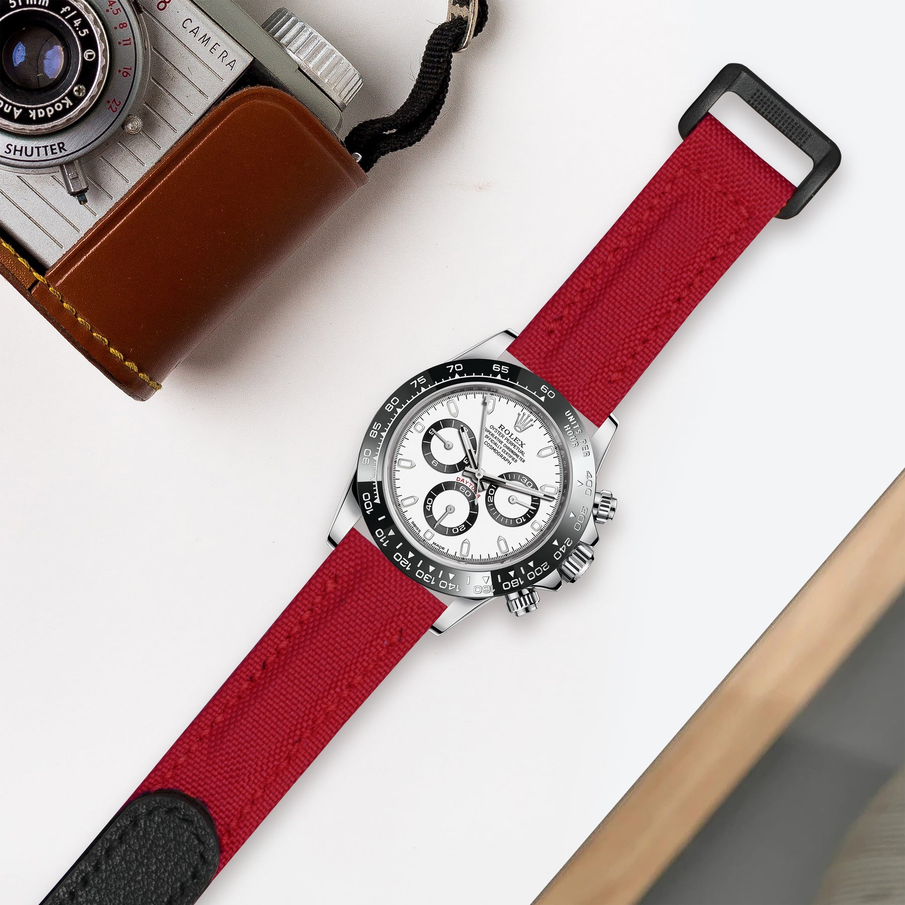 Rolex Daytona Straps - Velcro Canvas Extreme Padded Red