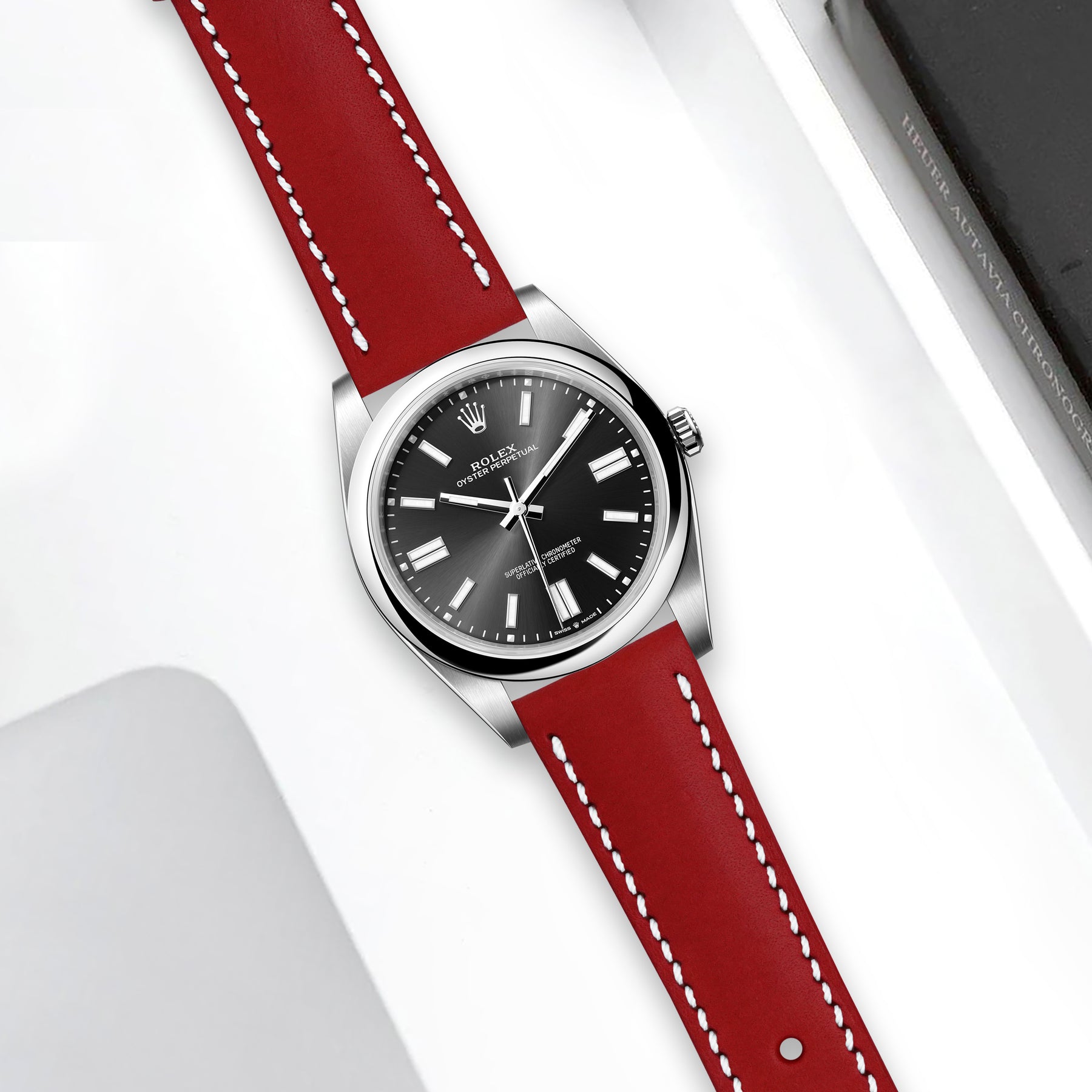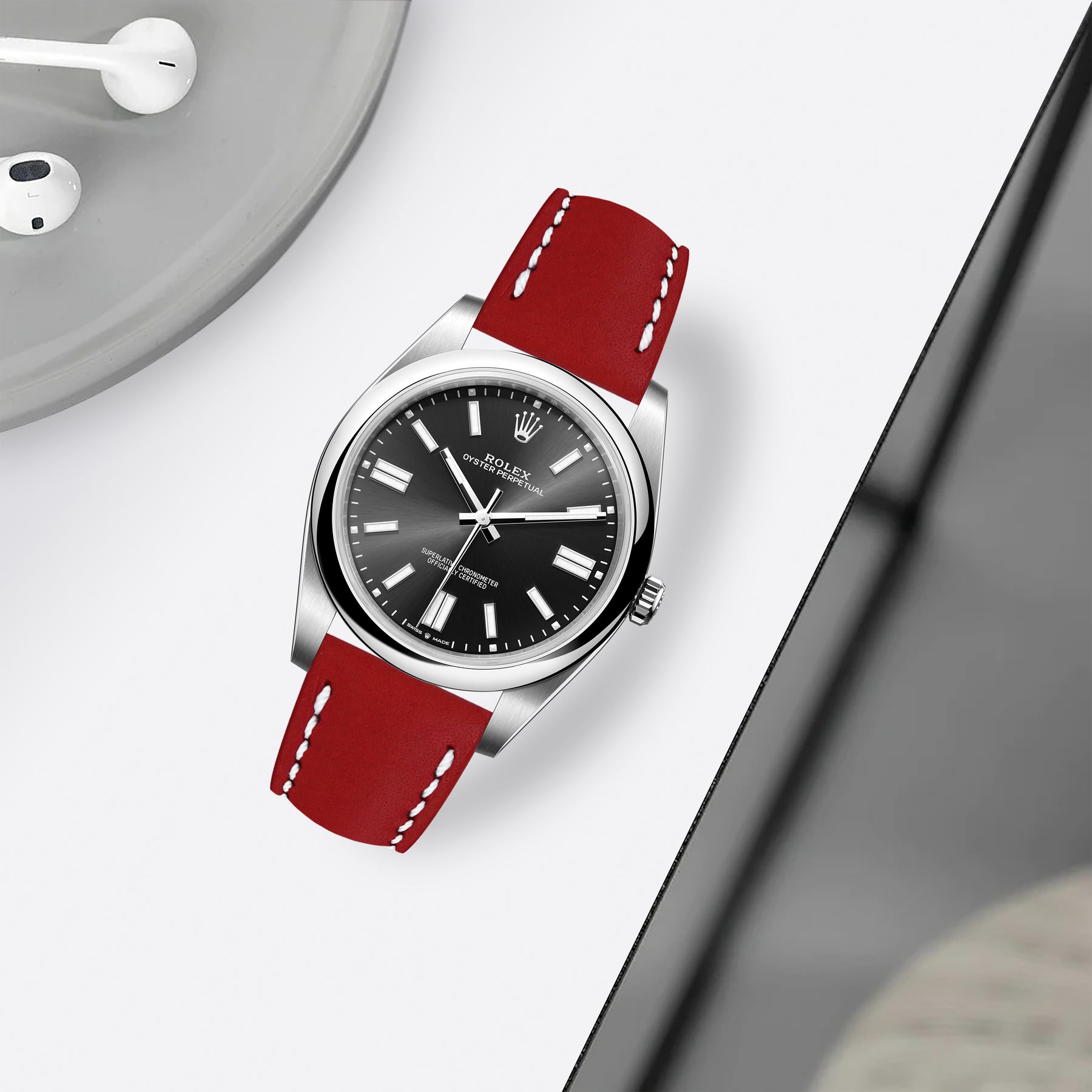 This leather is well-known for its soft feel and ability to develop a rich patina, adding character and depth the more you wear it. The smooth texture gives your watch an elegant look without being overly formal, making it suitable for both professional and casual settings.