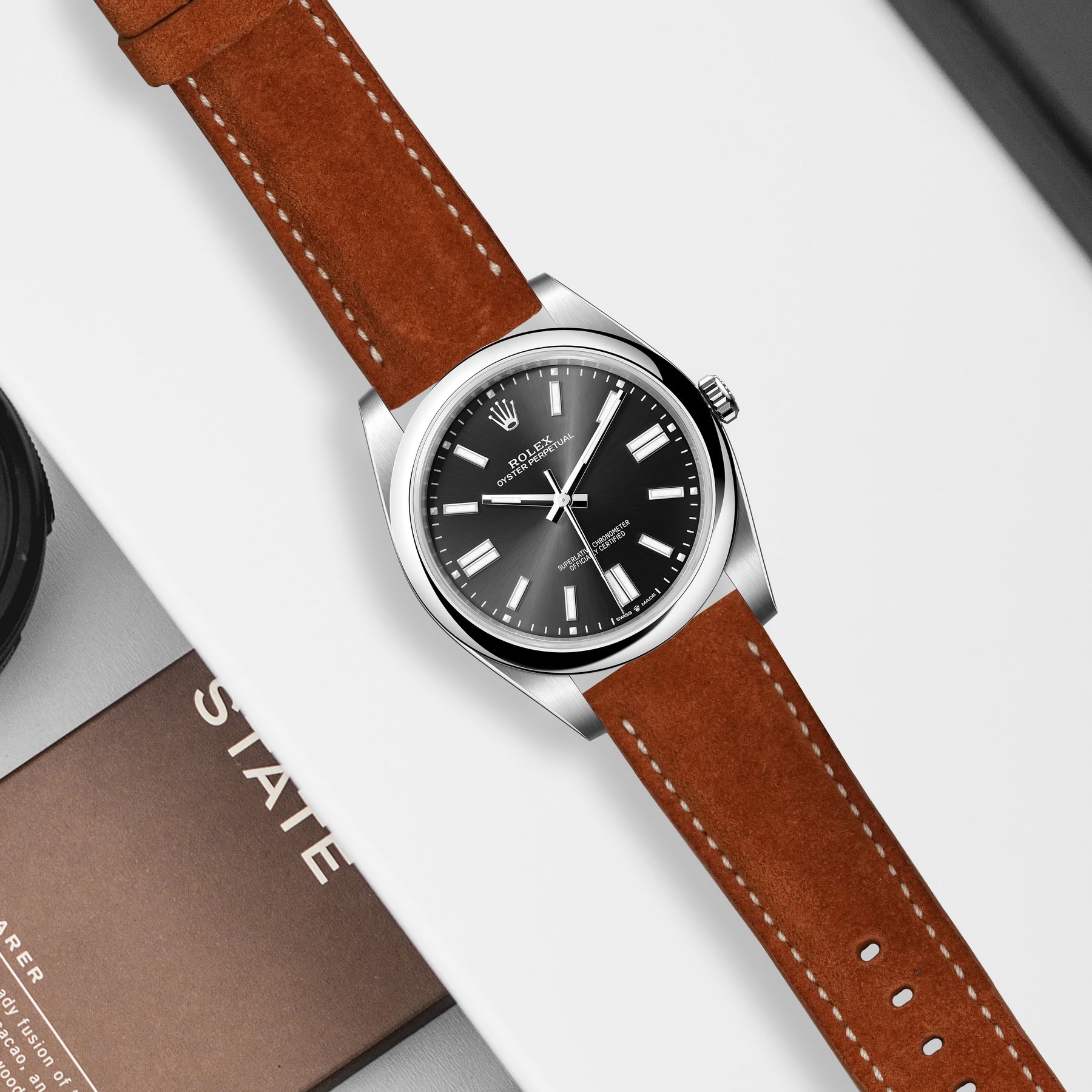 Rolex Oyster Perpetual Straps - Suede Chestnut