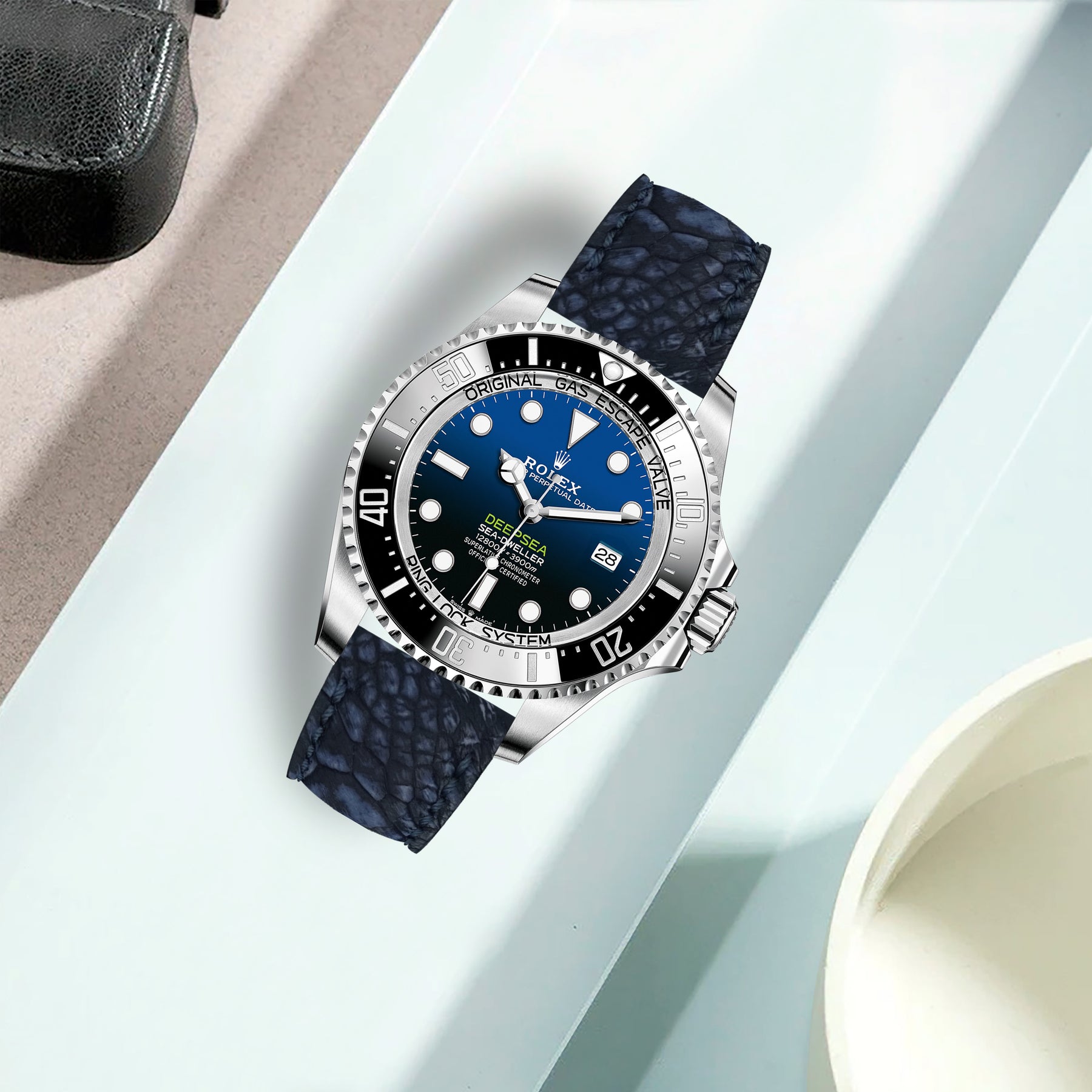 Rolex Sea-Dweller Straps - Ostrich Leg Nubuck Navy Blue
