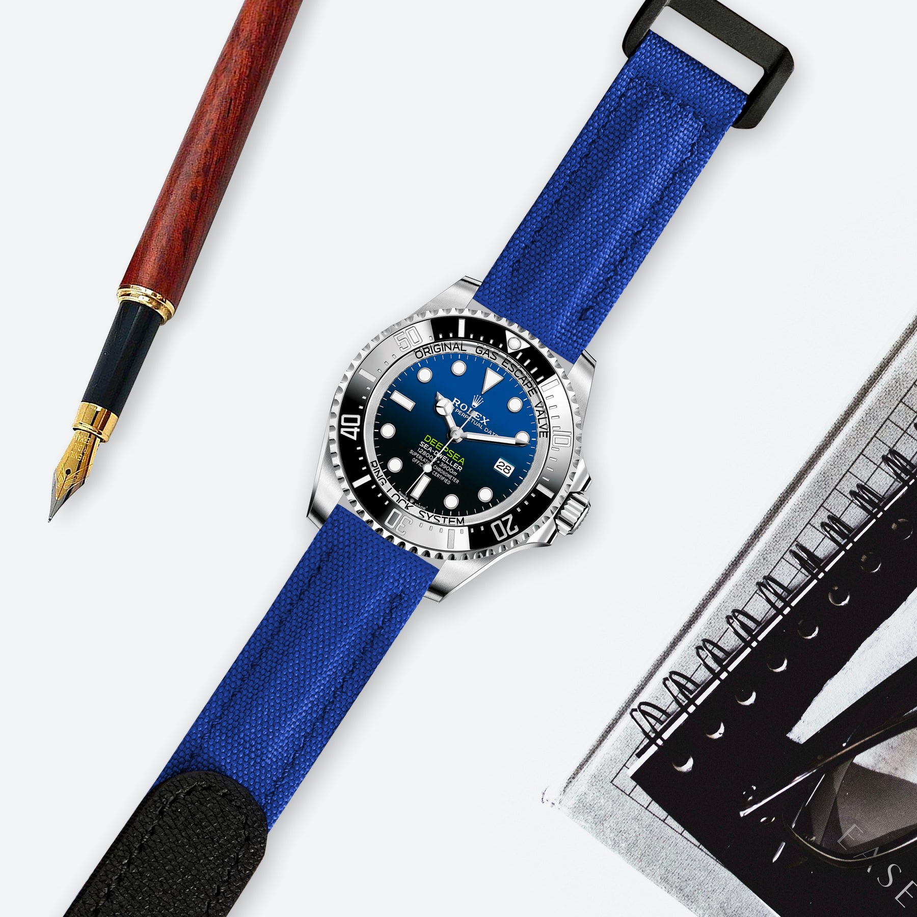 Rolex Sea-Dweller Straps - Velcro Canvas Extreme Padded Electric Blue