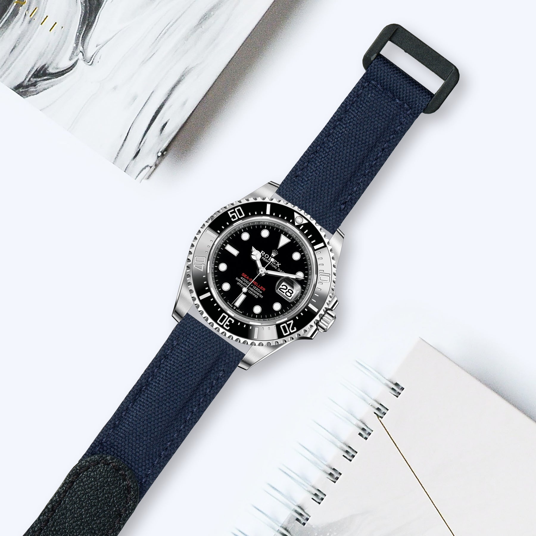 Rolex Sea-Dweller Straps - Velcro Canvas Extreme Padded Navy Blue