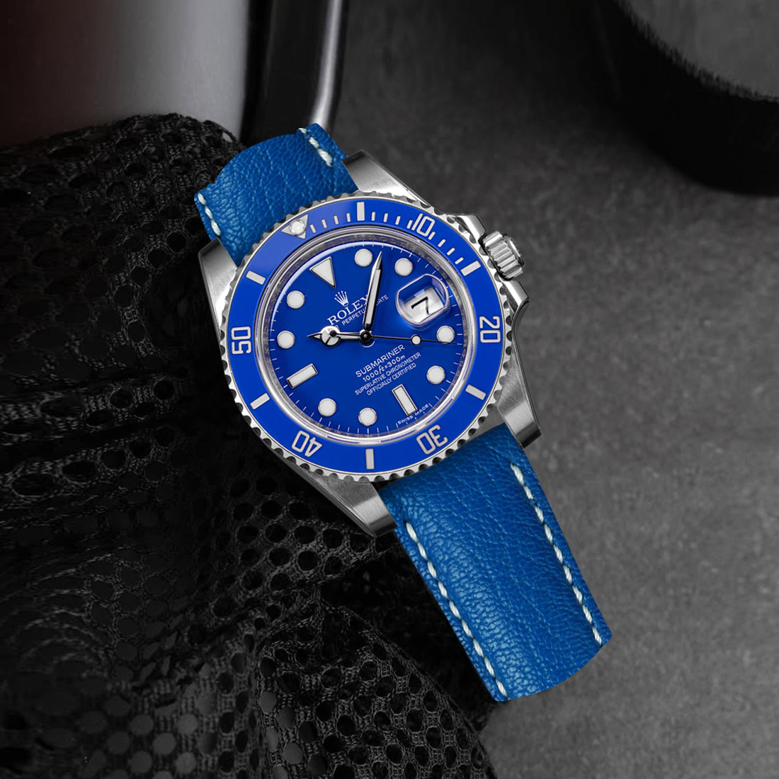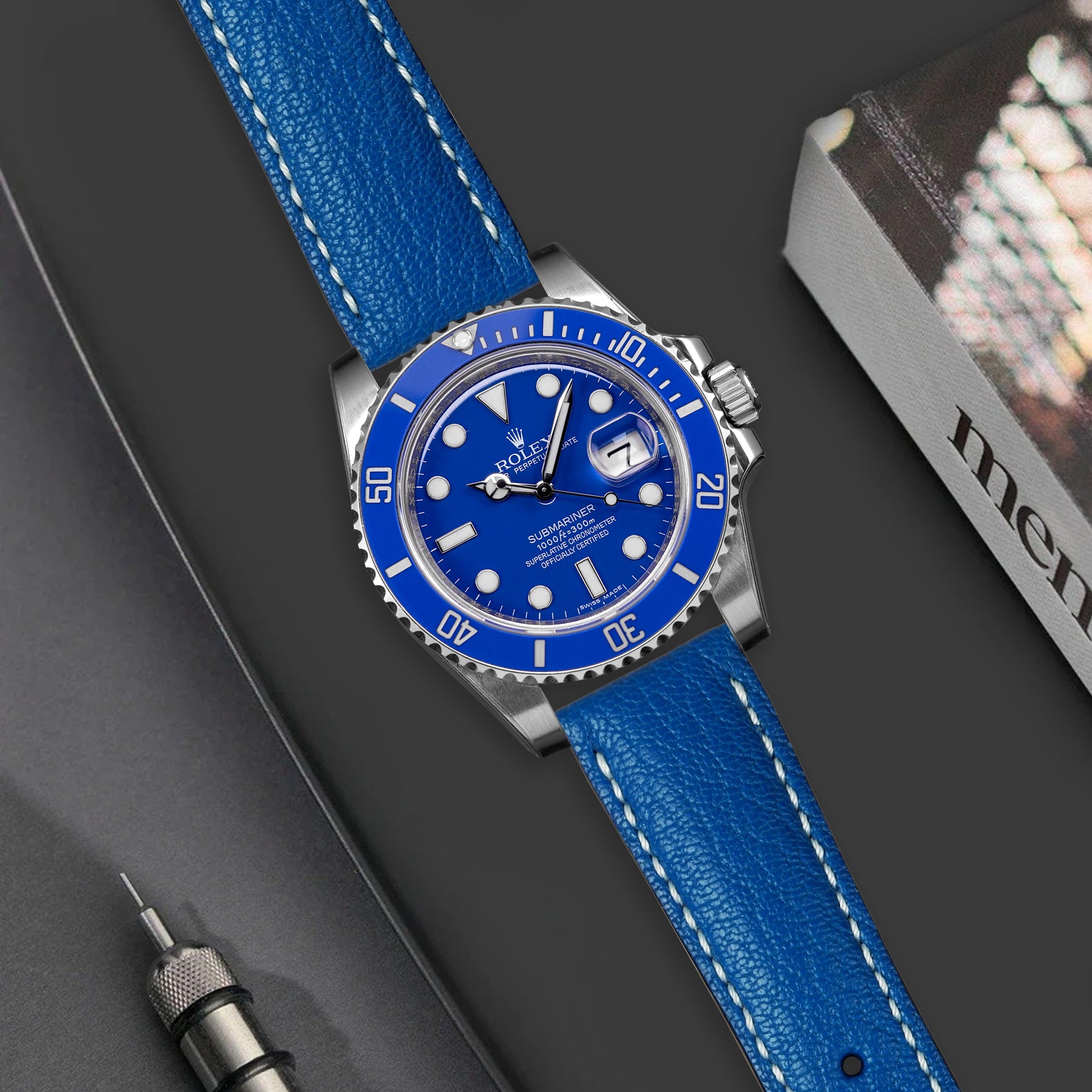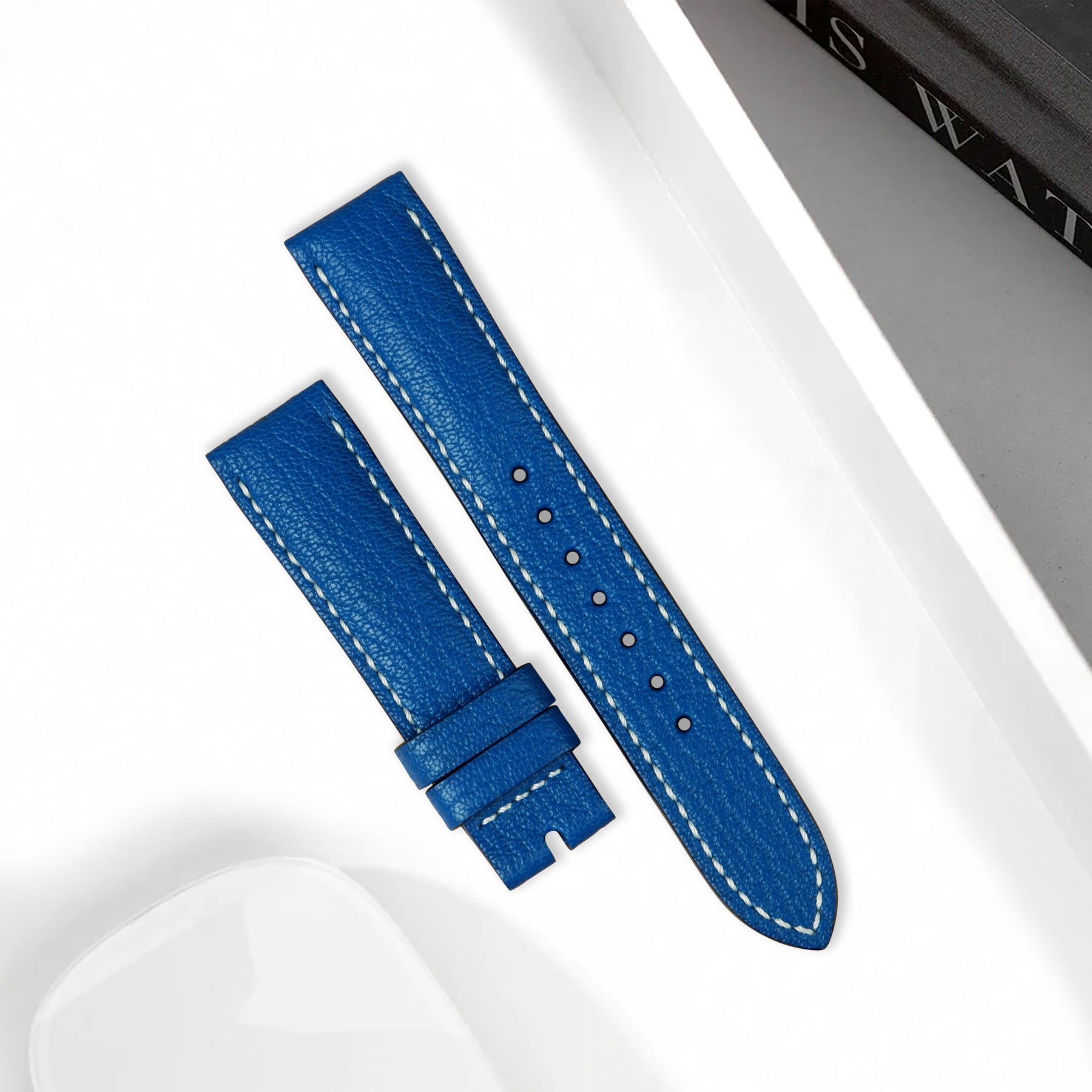 Chevre is immediately recognisable from its texture and grain. A smooth surface and a slight gloss immediately imparts luxuriousness to products made with this leather. Not only a feast for the eyes, chevre is also strongly water and scratch-resistant, and is a great option for daily wear watch straps.