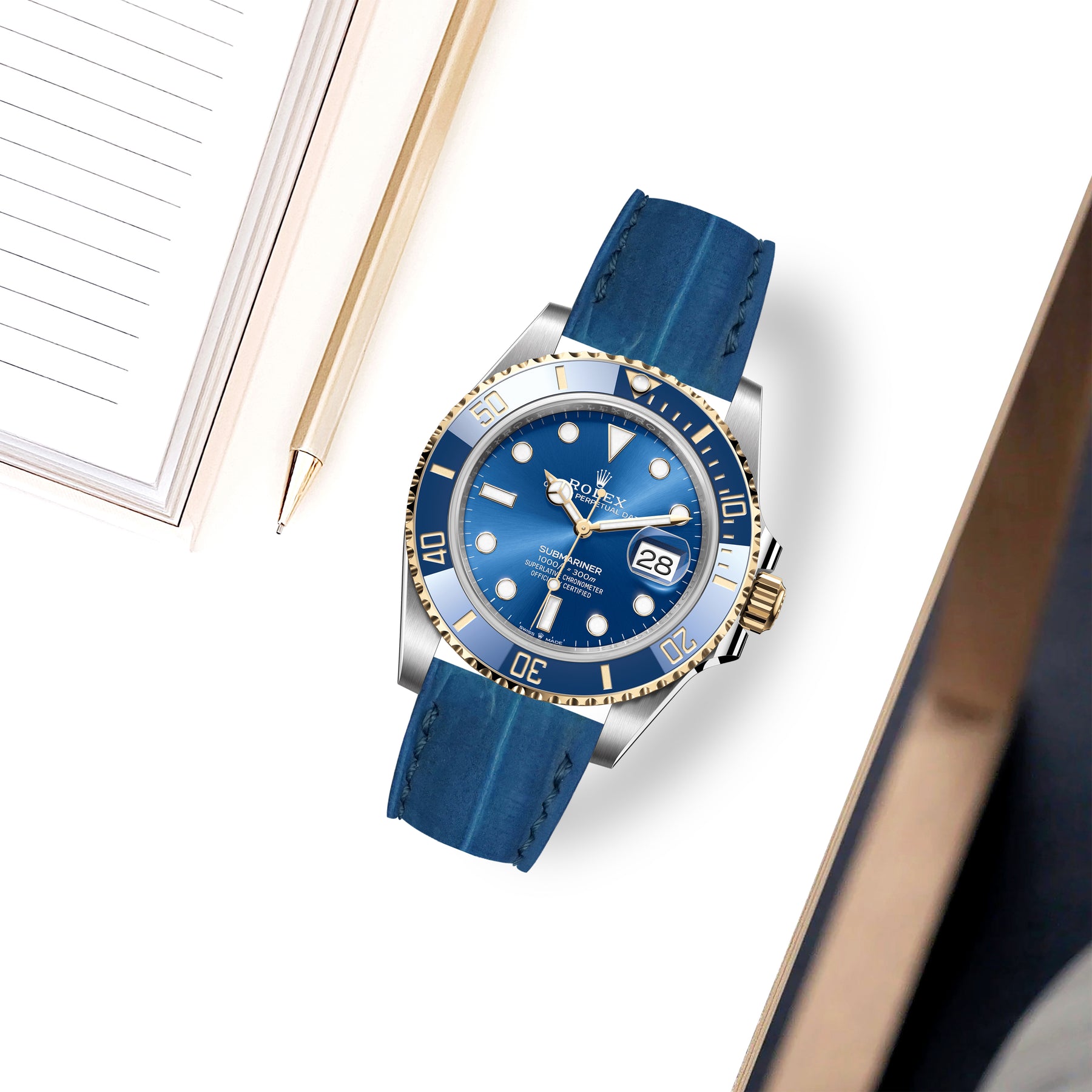 Rolex Submariner Straps - Croco Nubuck Blue