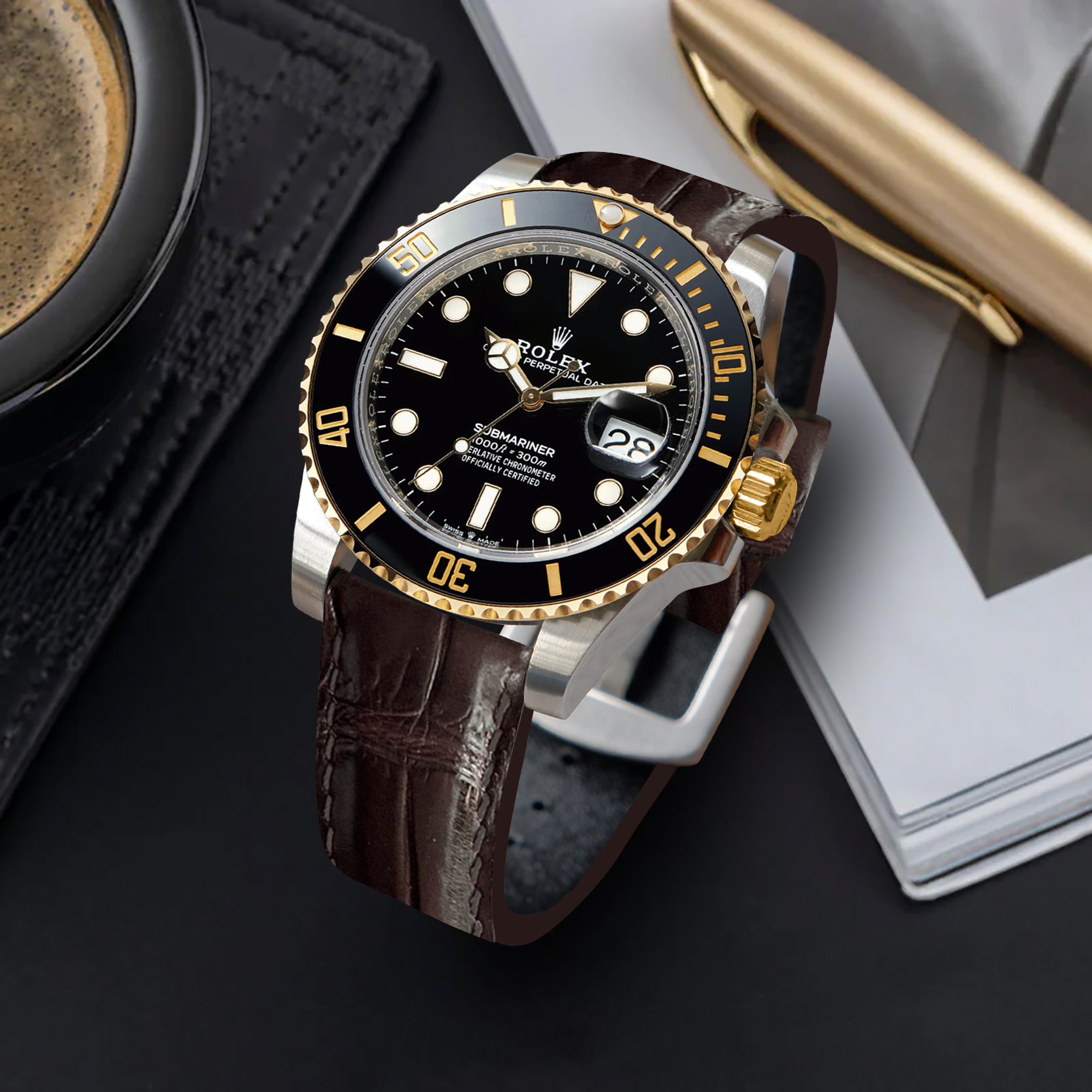 Rolex Submariner Straps - Croco Tobacco