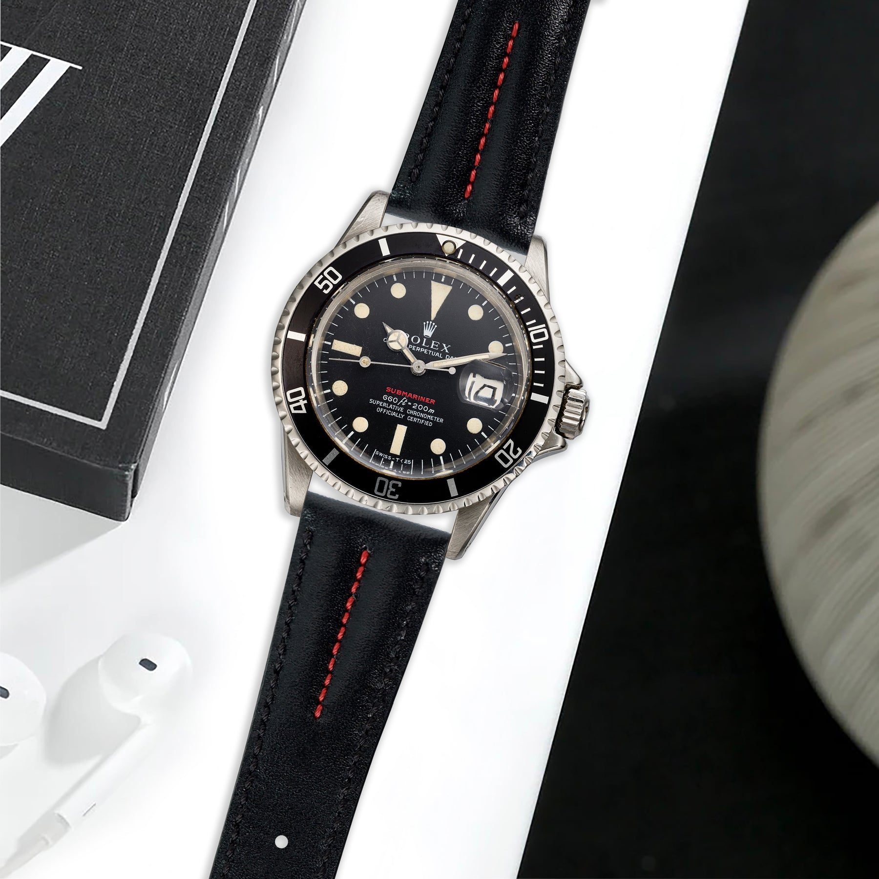 Material : Black Oil tanned Italian calf leather materials for a comfortable fit and lightweight feel with hypoallergenic calf leather lining which prolongs the life of our straps by creating a barrier between the leather of the strap and your skin.