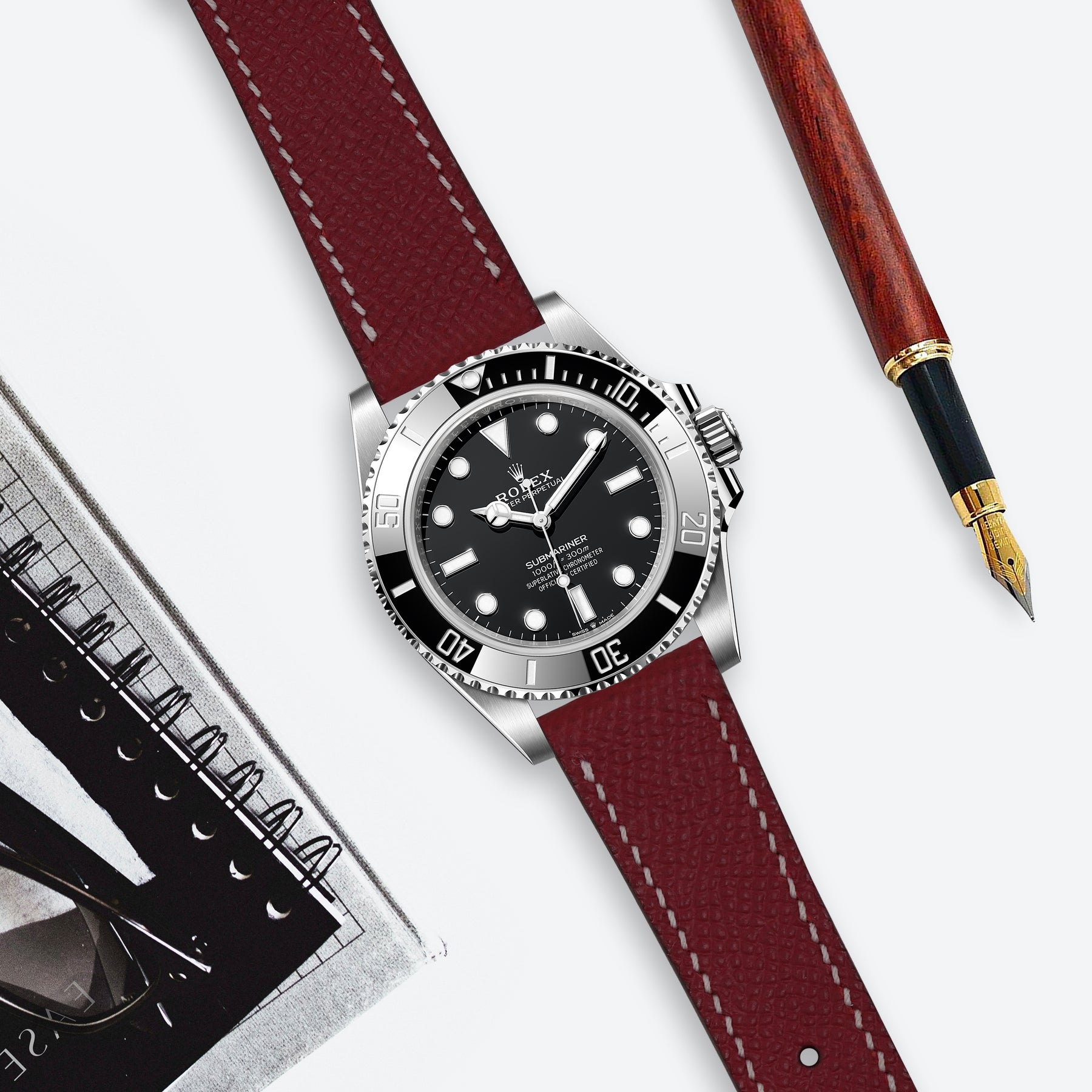 Rolex Submariner Straps - Epsom Maroon
