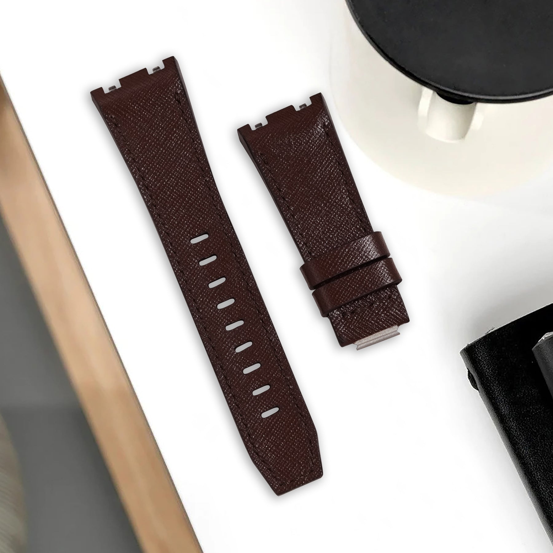 In addition, our Dark Brown Saffiano is the one strap for all your needs. The watch strap deals well with water, scratches and is also easy to care for and can be cleaned with a simple wipe using a damp cloth. Coming in a wide range of saffiano leather colours material endowed with a new design of Audemars Piguet Royal Oak Offshore 43mm & 42mm.