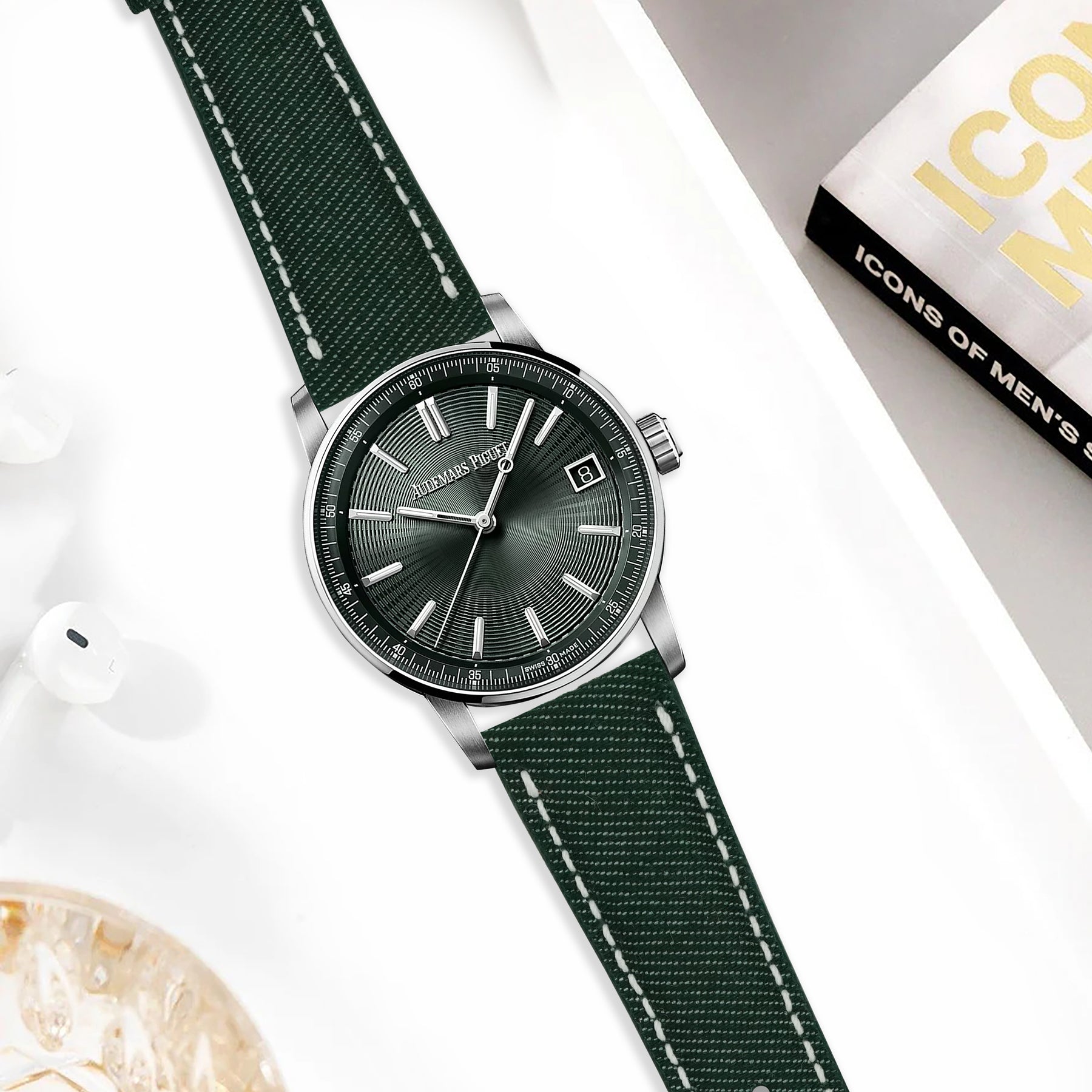 Description : Looking for something more eye-catching? Japanese Denim Brewster Green brings contrast and clarity to your wrist. The deep green denim tone combined with visible white stitch seams gives the strap a fresh, expressive look that stands out without being loud.