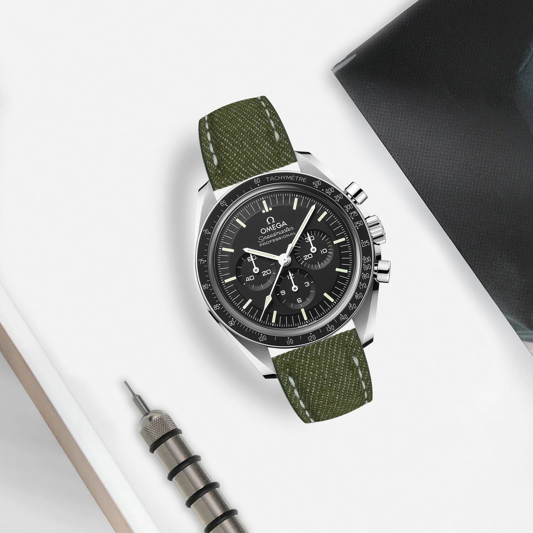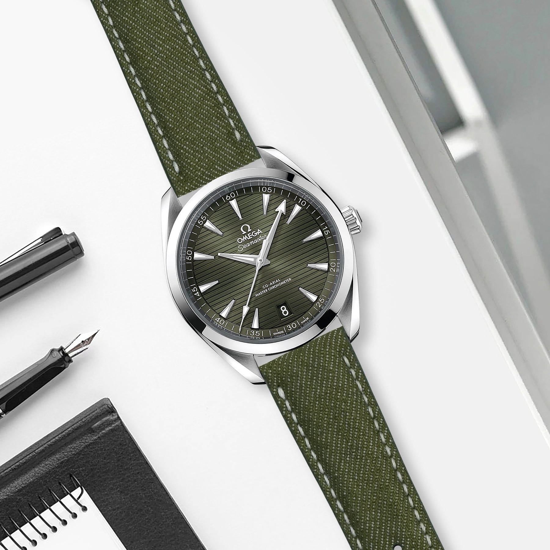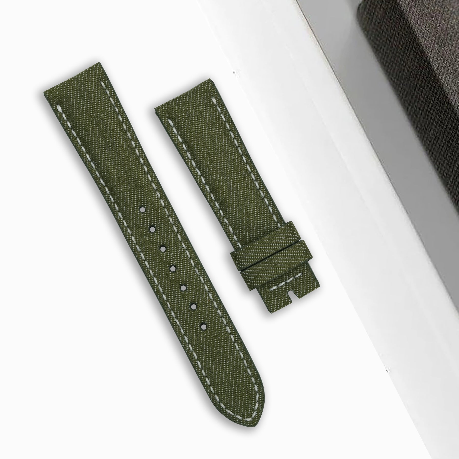 Description : Looking for something more eye-catching? Japanese Denim Moss brings contrast and clarity to your wrist. The earthy-green denim tone combined with visible white stitch seams gives the strap a fresh, expressive look that stands out without being loud.