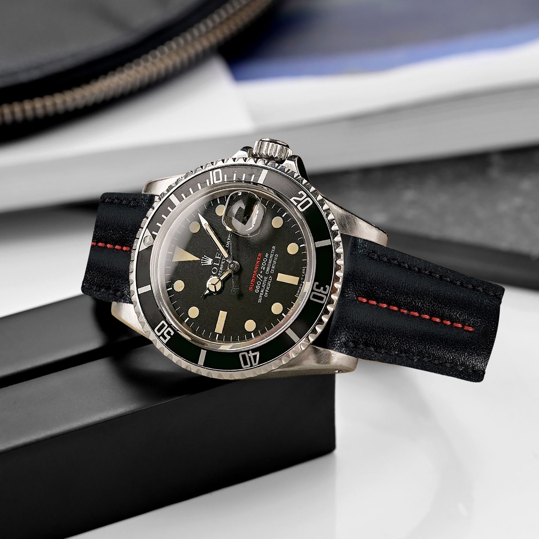 Material : Black Oil tanned Italian calf leather materials for a comfortable fit and lightweight feel with hypoallergenic calf leather lining which prolongs the life of our straps by creating a barrier between the leather of the strap and your skin.