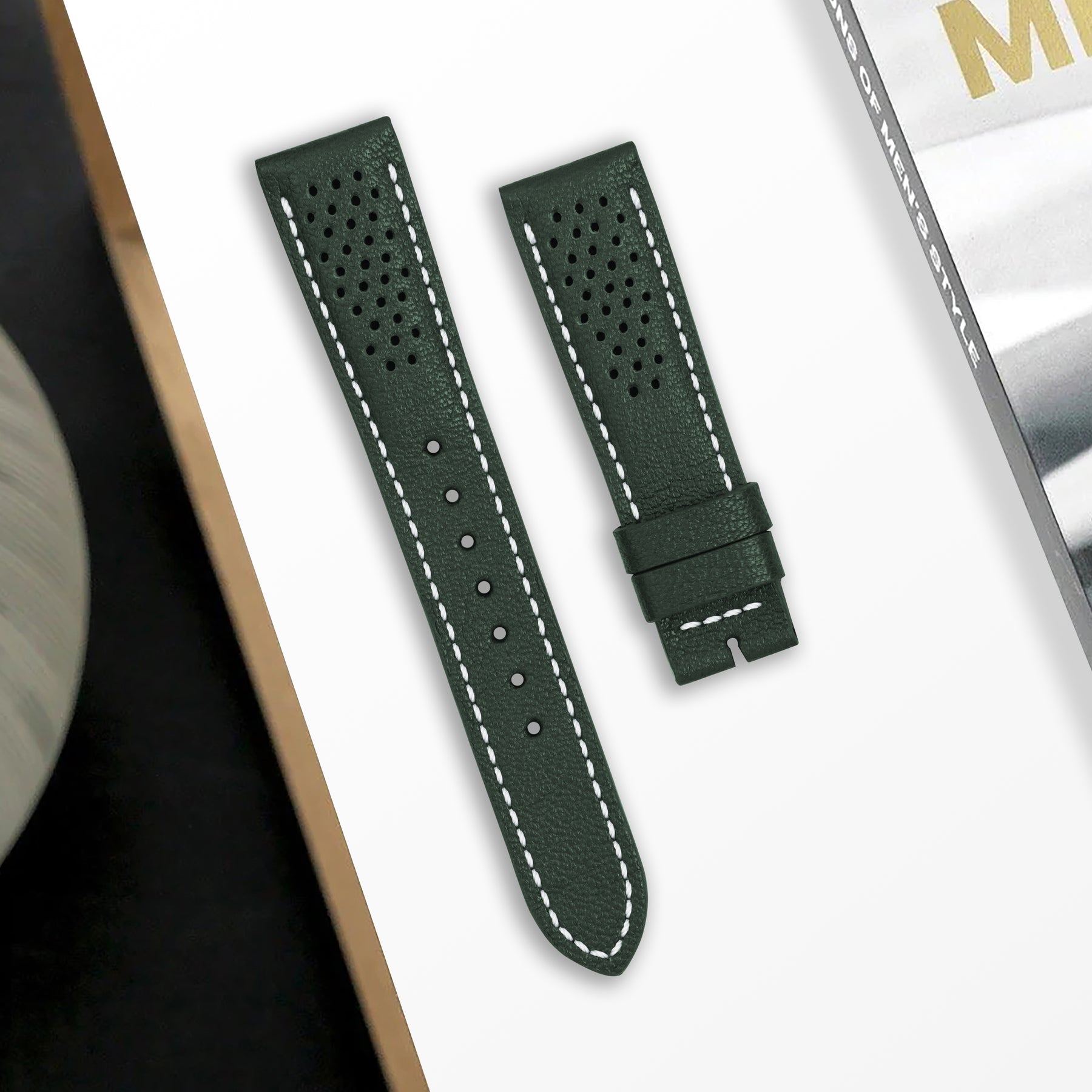 Description : Inspired by the sporty times of the 70’s, these racing straps are an essential to make any sport watch look even cooler. The holes make the strap lighter and more breathable, ideal for warm conditions where you want the comfy feel of a leather strap but don’t want the whole leather feel.