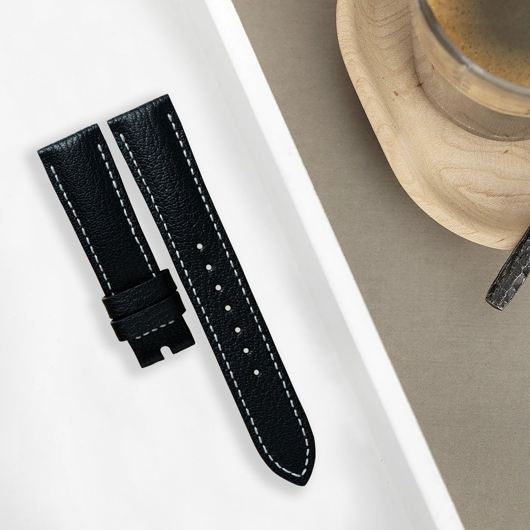 Chevre is immediately recognisable from its texture and grain. A smooth surface and a slight gloss immediately imparts luxuriousness to products made with this leather. Not only a feast for the eyes, chevre is also strongly water and scratch-resistant, and is a great option for daily wear watch straps.