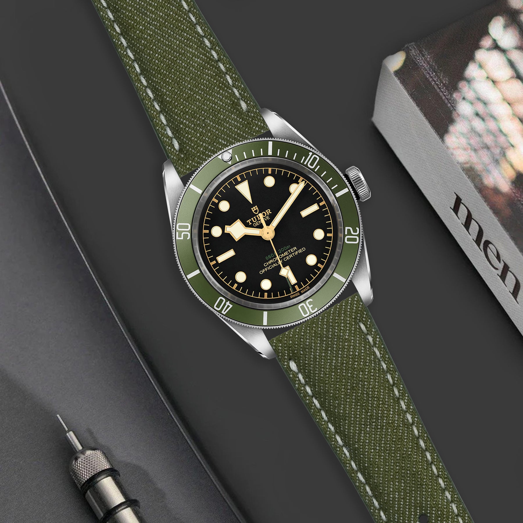 Description : Looking for something more eye-catching? Japanese Denim Moss brings contrast and clarity to your wrist. The earthy-green denim tone combined with visible white stitch seams gives the strap a fresh, expressive look that stands out without being loud.