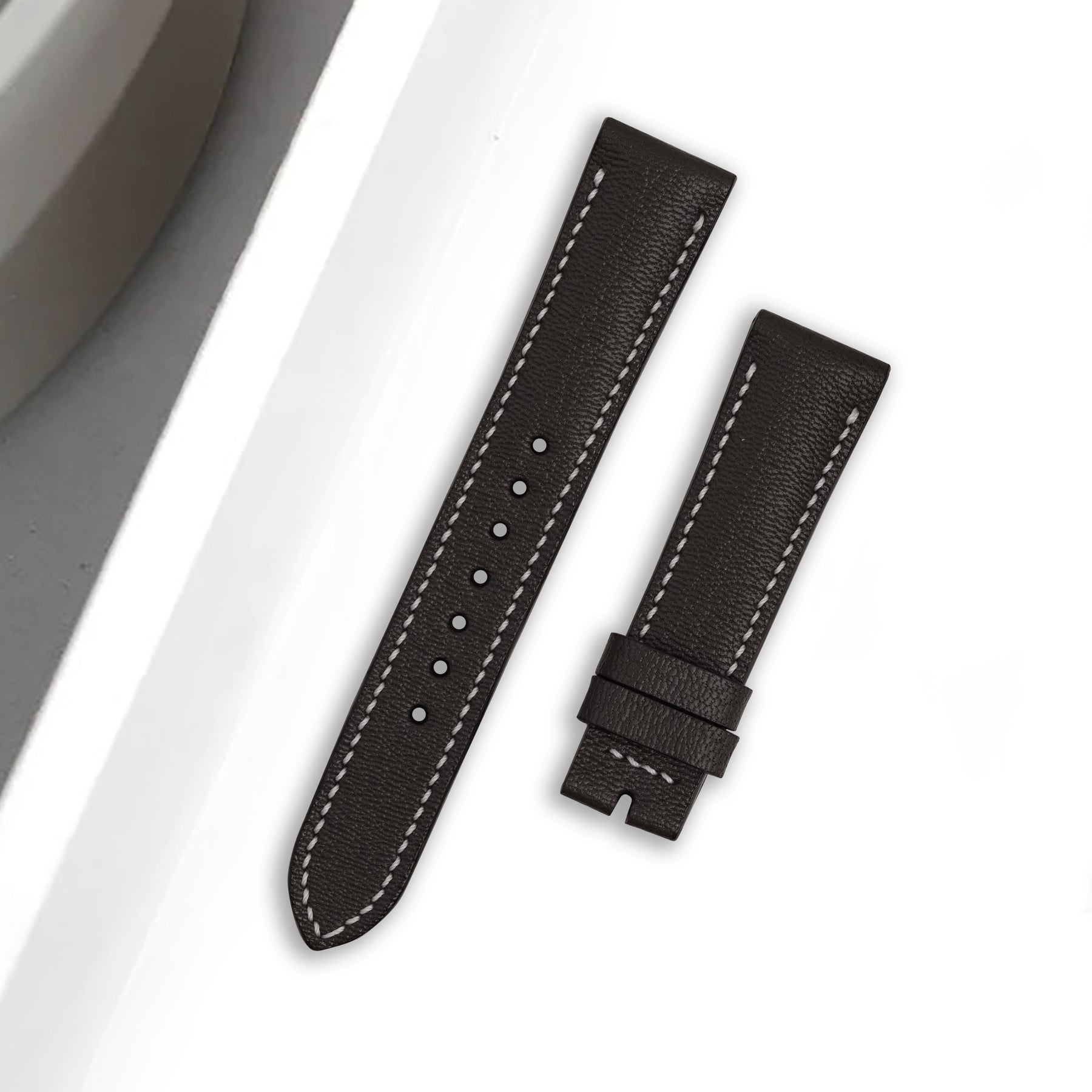 Chevre is immediately recognisable from its texture and grain. A smooth surface and a slight gloss immediately imparts luxuriousness to products made with this leather. Not only a feast for the eyes, chevre is also strongly water and scratch-resistant, and is a great option for daily wear watch straps.