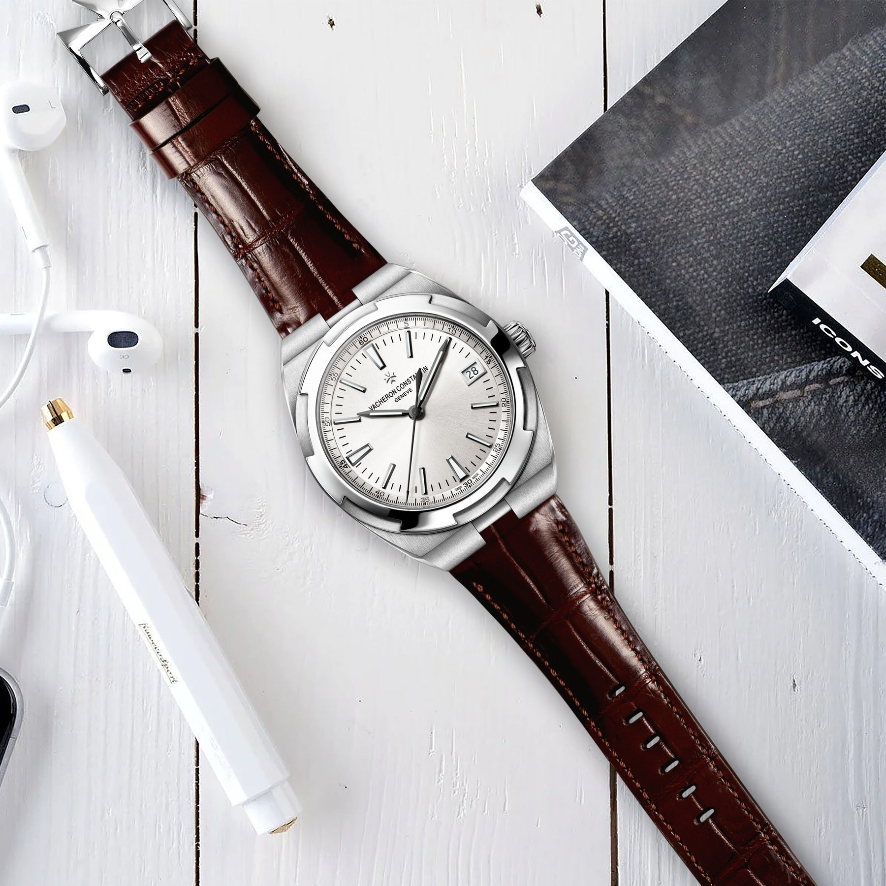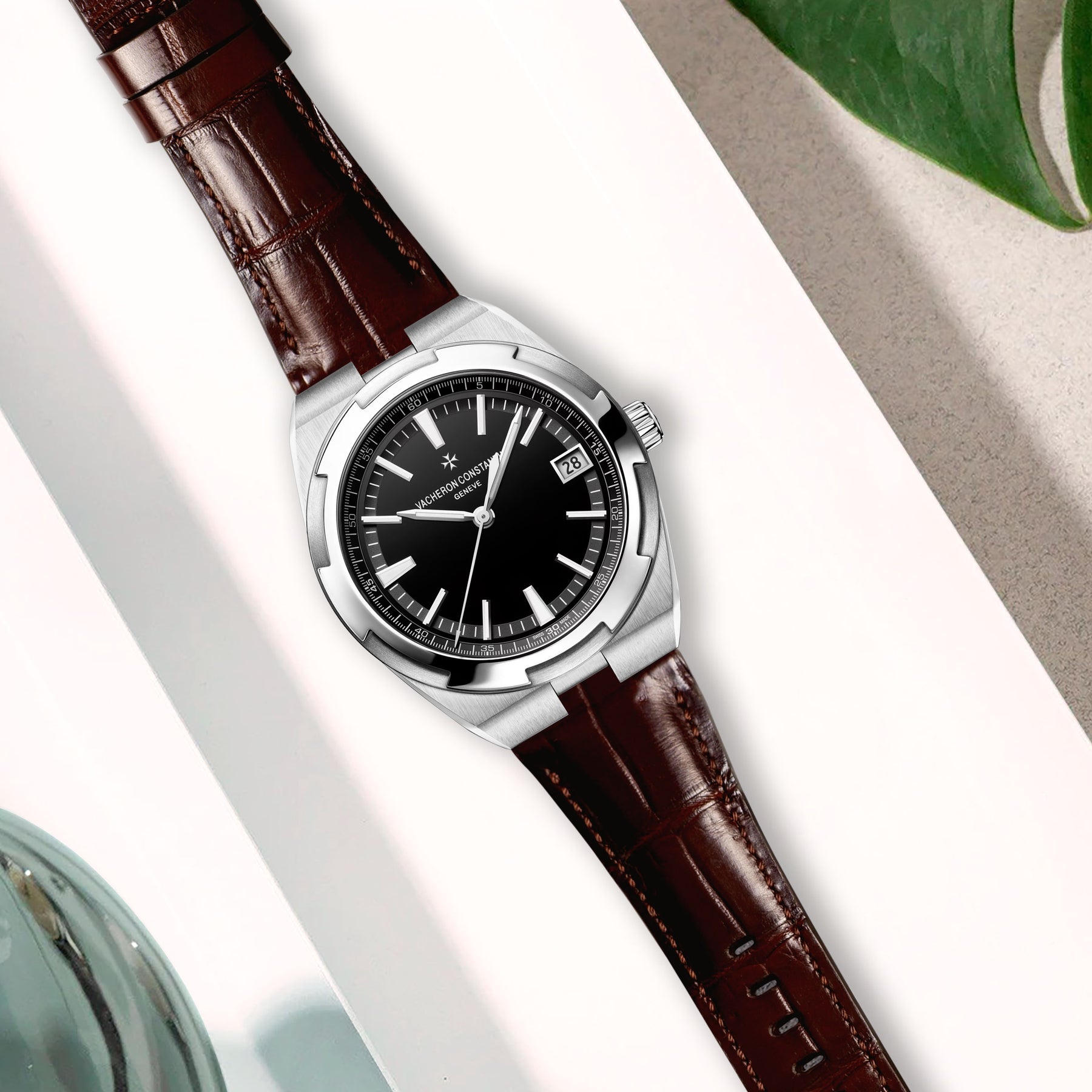 Crocodile skins are undoubtedly the most prestigious and sought after leather in the luxury goods market. This classy Croco leather strap with a fine glossy texture is made from the top quality croco skin. Because of its exotic and natural origin, every Croco leather strap has its own unique look and scale-pattern compliments any outfit from a suit-worn weekday to nightwear for weekends. Coming in a wide range of croco leather colours material for Vacheron Constantin Overseas, you can choose the one that best suits your watch and outfit.