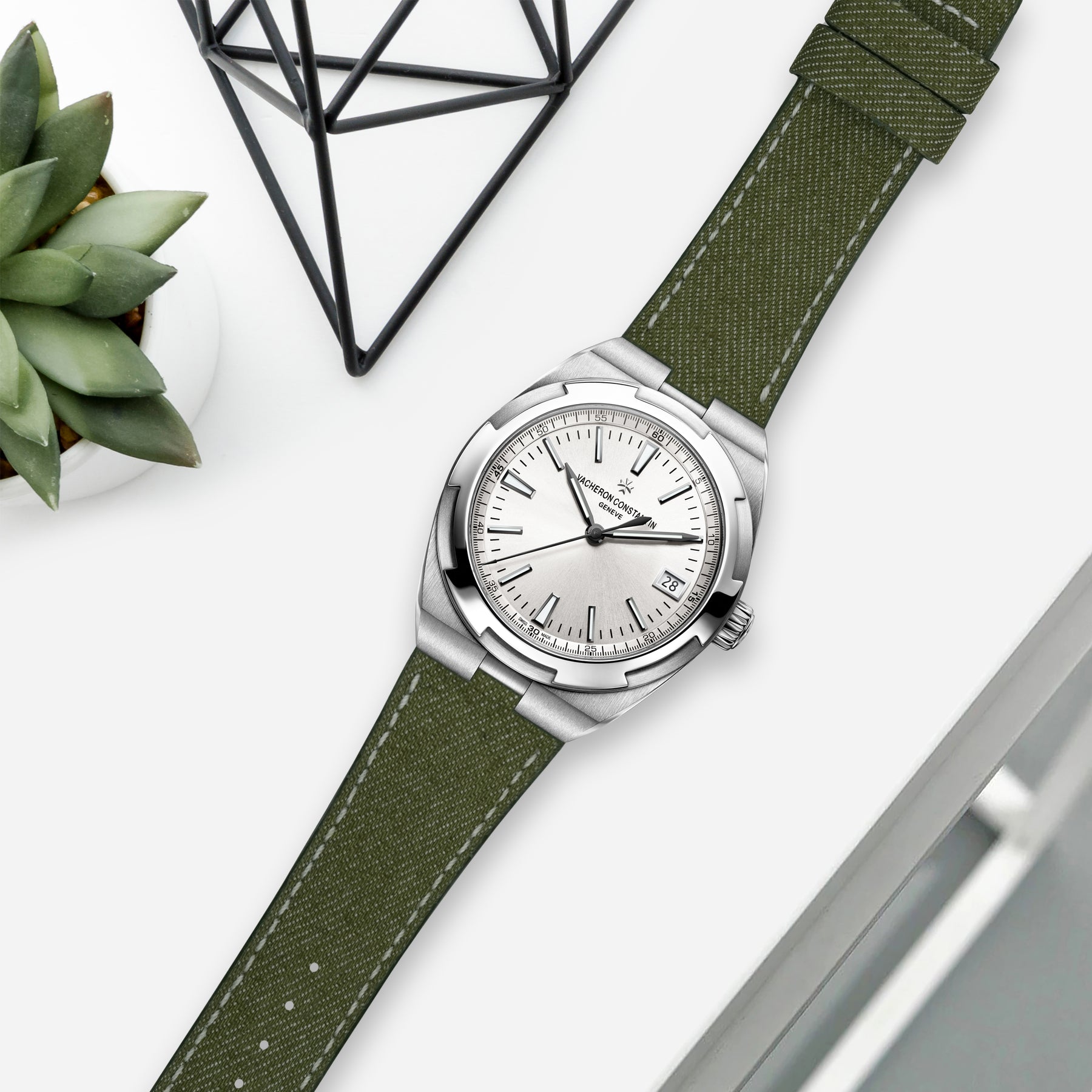 Our straps are specifically made to fit the Vacheron Constantin Overseas VCO 4500V (Self-Winding), VCO 7900V (Dual Time), VCO 4300V (Perpetual Calendar Ultra-Thin), VCO 42040, VCO 47450 (Dual Time), VCO 5500V (Chronograph), VCO 6000V (Tourbillon), VCO 7700V (World-Time)  with the special metal insert for the interchangeable strap system, you can easily switch in seconds without tools. While the OEM bracelet and rubber strap that comes with the watch are good, there are times when you just prefer to have a Denim Selvedge strap on for a different look.