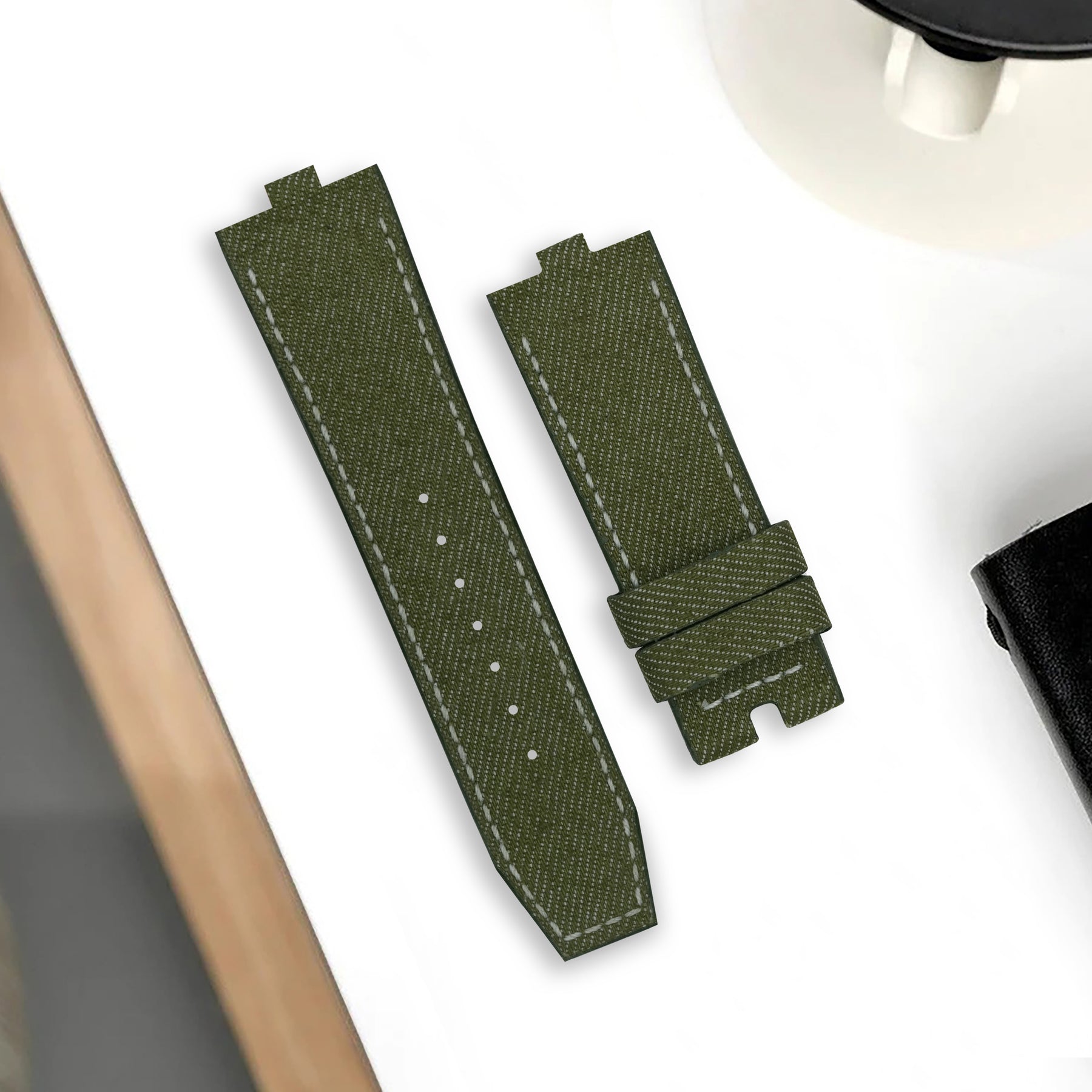 Japanese Denim Moss brings contrast and clarity to your wrist. We use original Selvedge Denim from Japan’s most prestigious and renowned mills. It is woven on rare and slow antique looms to produce exceptional and fascinating textures for straps. Beyond its unique yarn combination, the denim's tight weave, stiff texture, pronounced twill lines and slightly coarse yarns create an exquisite surface structure and marbling effects with wear.