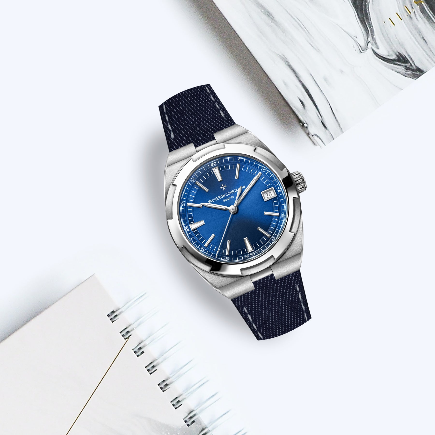 Our straps are specifically made to fit the Vacheron Constantin Overseas VCO 4500V (Self-Winding), VCO 7900V (Dual Time), VCO 4300V (Perpetual Calendar Ultra-Thin), VCO 42040, VCO 47450 (Dual Time), VCO 5500V (Chronograph), VCO 6000V (Tourbillon), VCO 7700V (World-Time) with the special metal insert for the interchangeable strap system, you can easily switch in seconds without tools. While the OEM bracelet and rubber strap that comes with the watch are good, there are times when you just prefer to have a Denim Selvedge strap on for a different look.