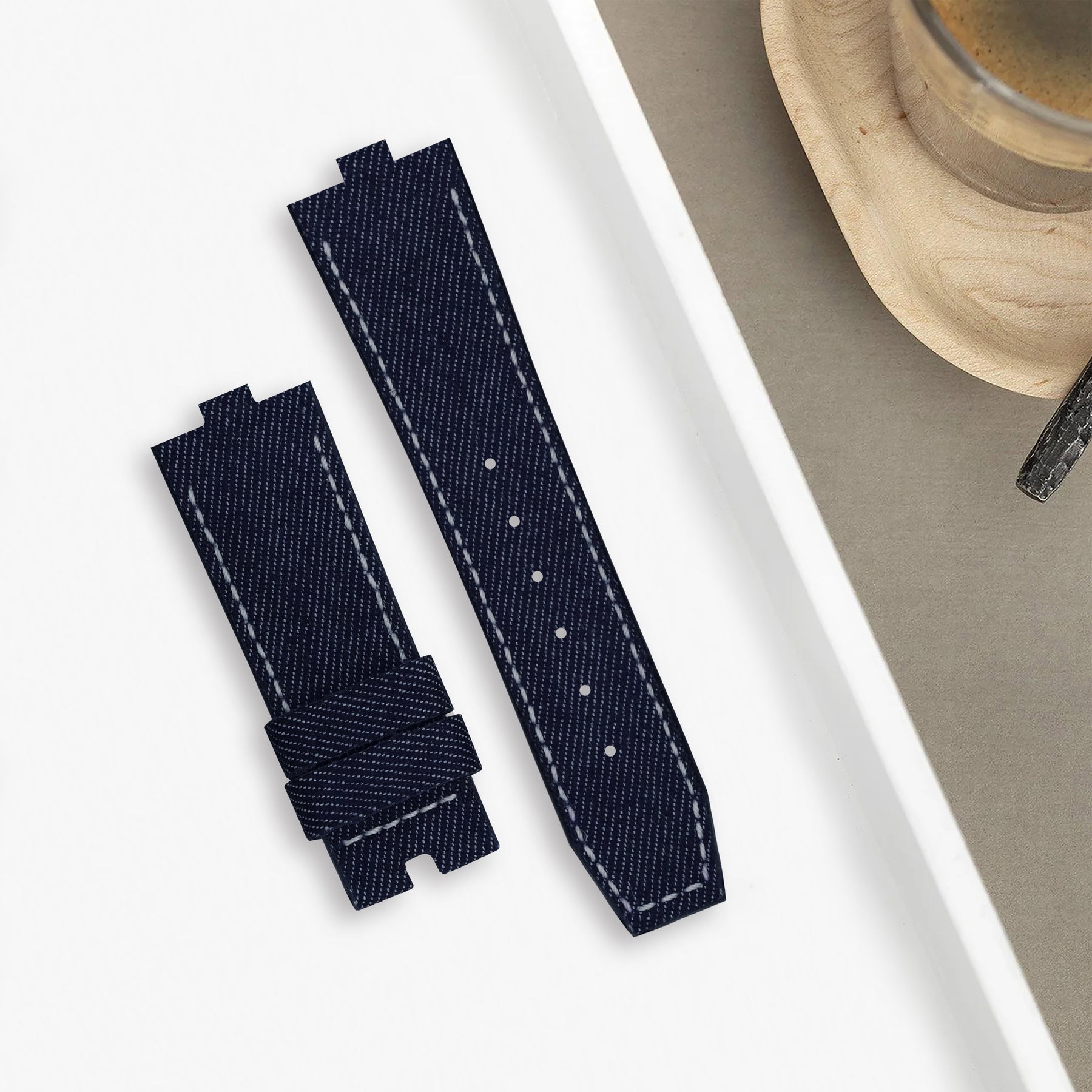 Japanese Denim New Ink brings contrast and clarity to your wrist. We use original Selvedge Denim from Japan’s most prestigious and renowned mills. It is woven on rare and slow antique looms to produce exceptional and fascinating textures for straps. Beyond its unique yarn combination, the denim's tight weave, stiff texture, pronounced twill lines and slightly coarse yarns create an exquisite surface structure and marbling effects with wear.