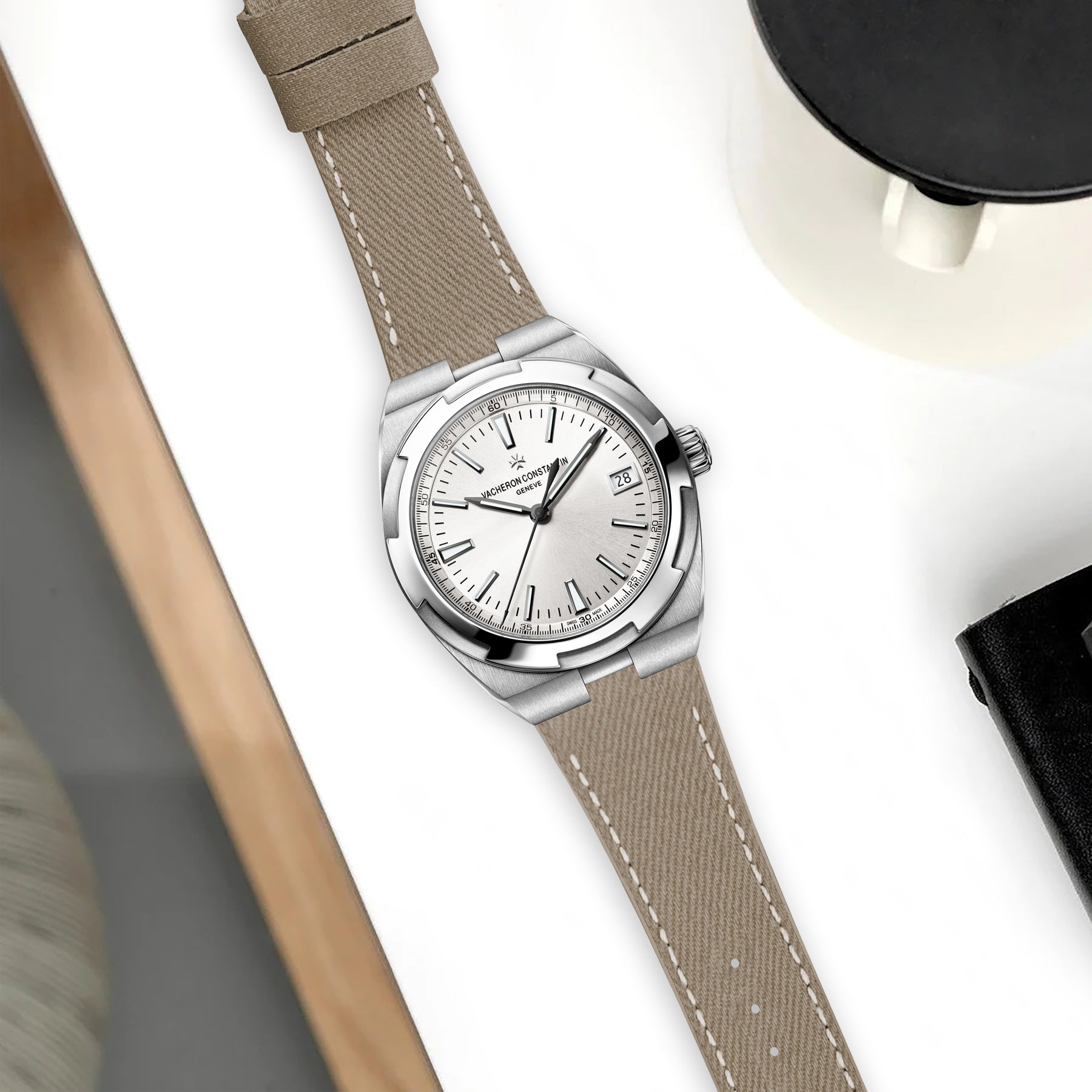 Our straps are specifically made to fit the Vacheron Constantin Overseas VCO 4500V (Self-Winding), VCO 7900V (Dual Time), VCO 4300V (Perpetual Calendar Ultra-Thin), VCO 42040, VCO 47450 (Dual Time), VCO 5500V (Chronograph), VCO 6000V (Tourbillon), VCO 7700V (World-Time)  with the special metal insert for the interchangeable strap system, you can easily switch in seconds without tools. While the OEM bracelet and rubber strap that comes with the watch are good, there are times when you just prefer to have a Denim Selvedge strap on for a different look.