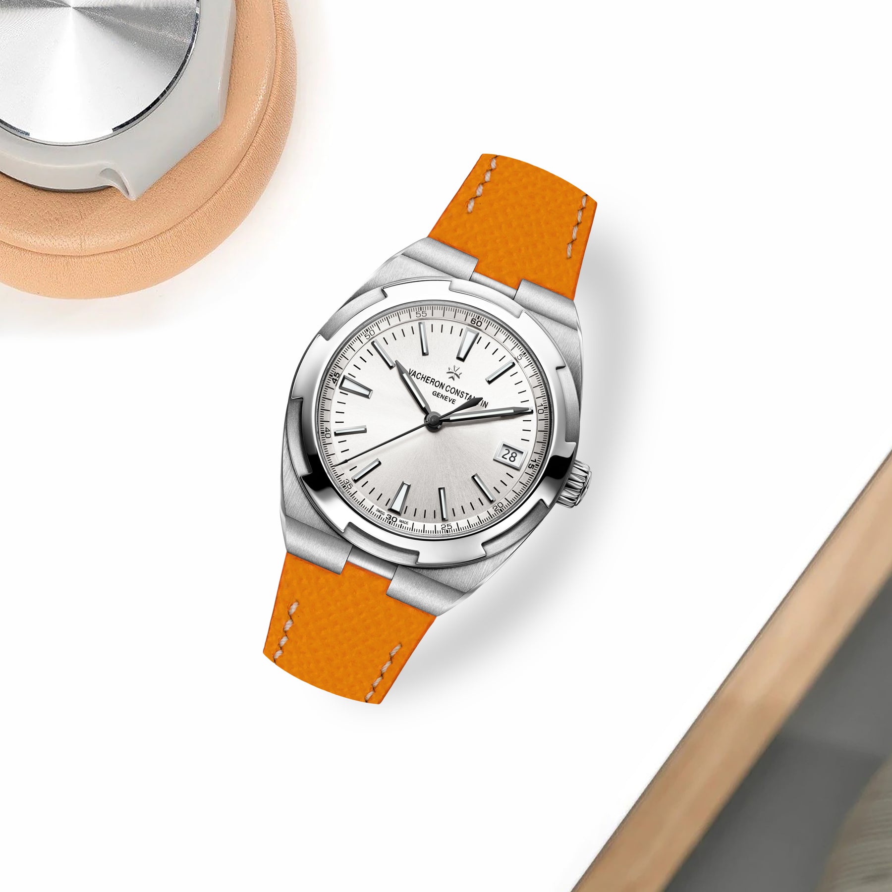 Our straps are specifically made to fit the Vacheron Constantin Overseas VCO 4500V (Self-Winding), VCO 7900V (Dual Time), VCO 4300V (Perpetual Calendar Ultra-Thin), VCO 5500V (Chronograph), VCO 6000V (Tourbillon), VCO 7700V (World-Time) with the special metal insert for the interchangeable strap system, you can easily switch in seconds without tools. While the OEM bracelet and rubber strap that comes with the watch are good, there are times when you just prefer to have a Epsom strap on for a different look.