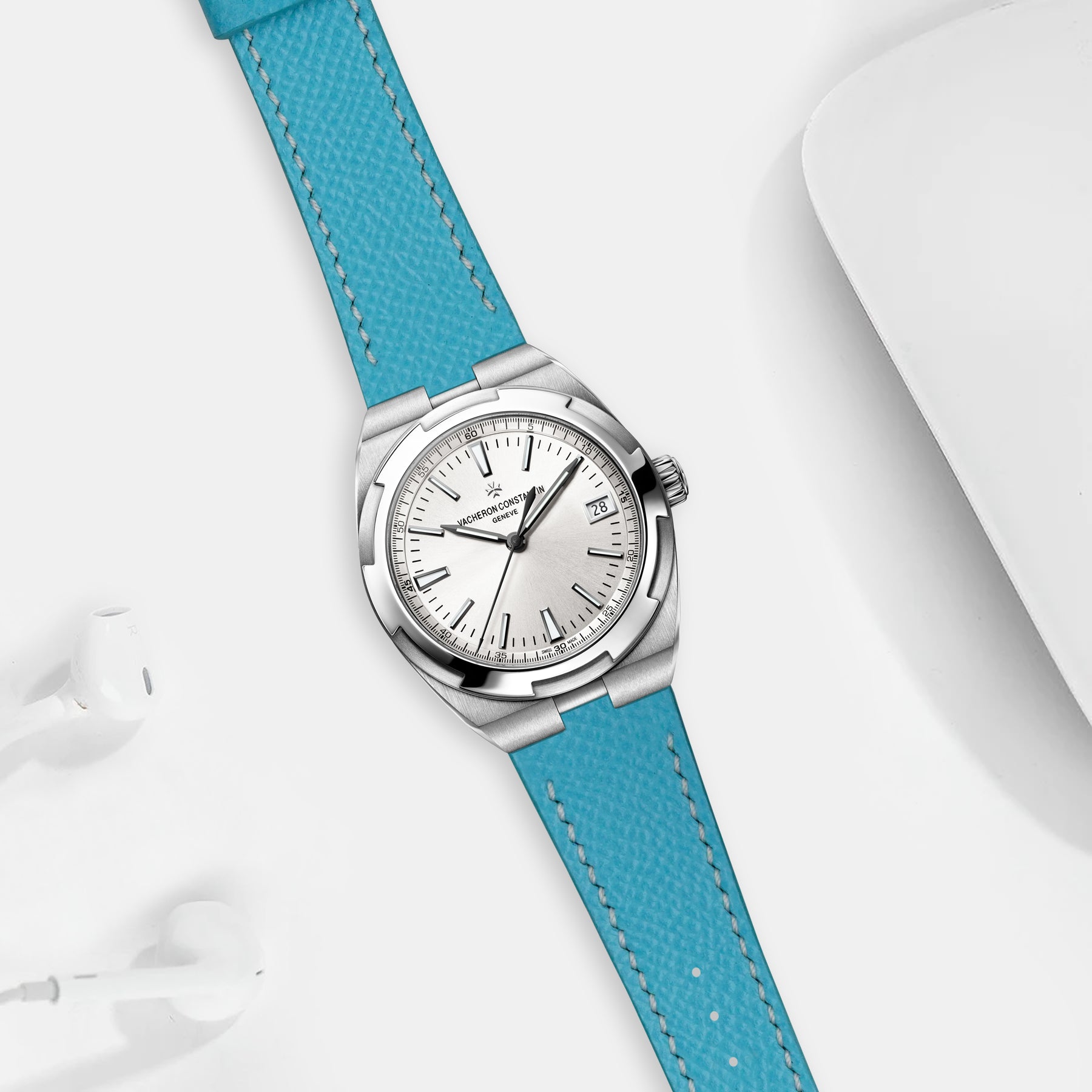 Our straps are specifically made to fit the Vacheron Constantin Overseas VCO 4500V (Self-Winding), VCO 7900V (Dual Time), VCO 4300V (Perpetual Calendar Ultra-Thin), VCO 5500V (Chronograph), VCO 6000V (Tourbillon), VCO 7700V (World-Time) with the special metal insert for the interchangeable strap system, you can easily switch in seconds without tools. While the OEM bracelet and rubber strap that comes with the watch are good, there are times when you just prefer to have a Epsom strap on for a different look.