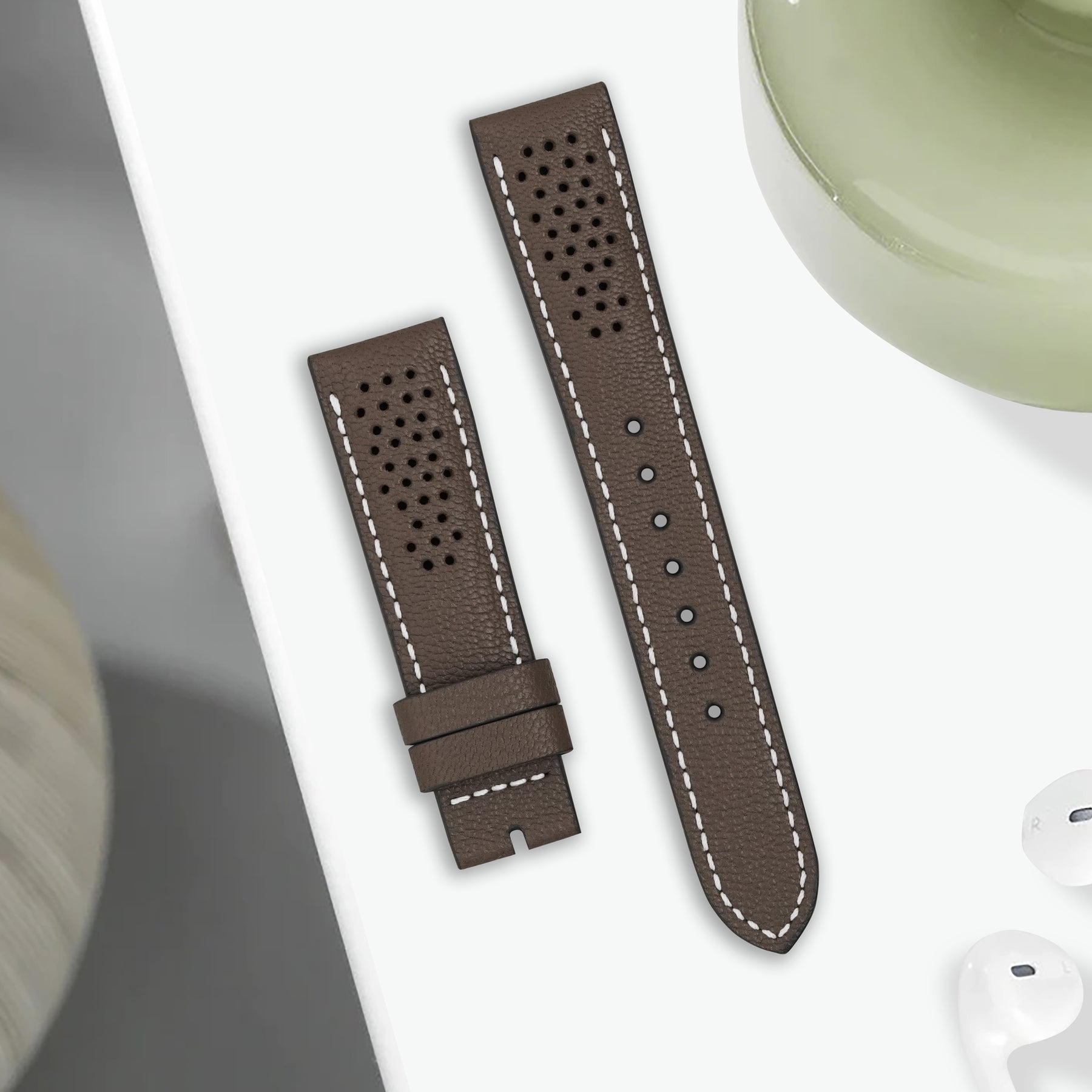 Description : Inspired by the sporty times of the 70’s, these racing straps are an essential to make any sport watch look even cooler. The holes make the strap lighter and more breathable, ideal for warm conditions where you want the comfy feel of a leather strap but don’t want the whole leather feel.