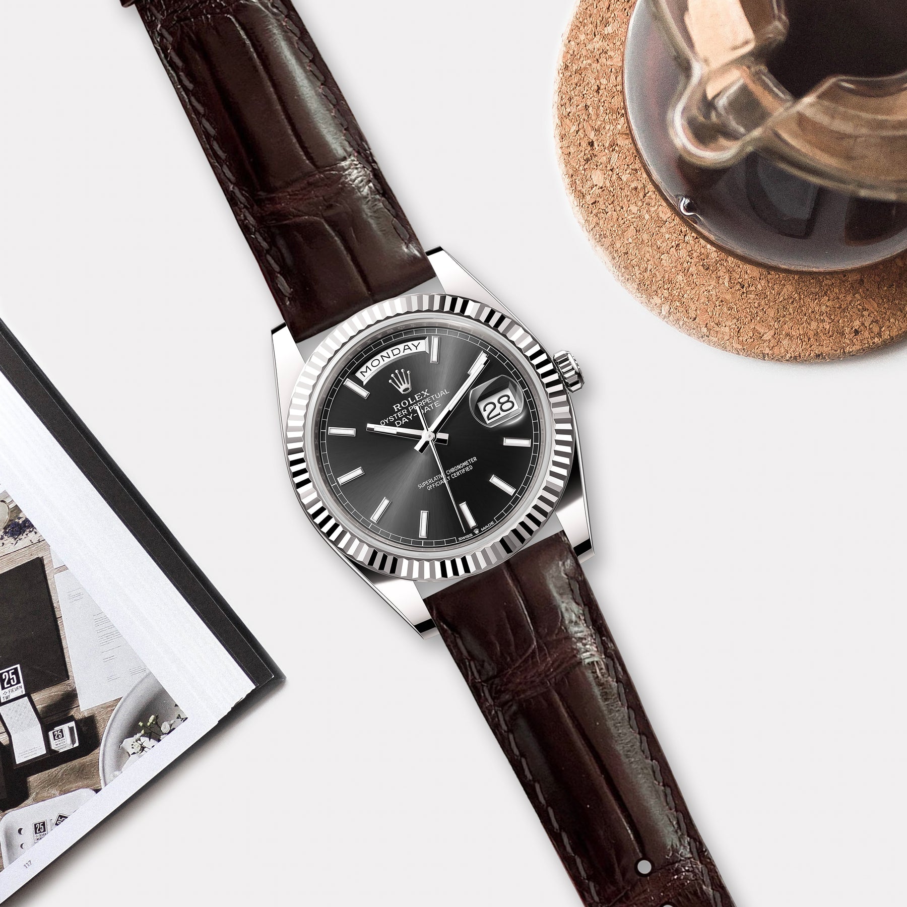 Made from the very best skin and worn for those very special occasions. This strap is a statement piece with a firm foot in elegant evening attire and another in jeans and weekend mode. Masculine strap that successfully pairs with a whole host of watches.